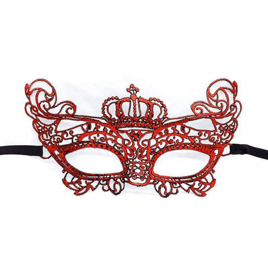 Mey İthalat® Kırmızı Renk Dantel Örgü İşlemeli Parti Maskesi Model 2