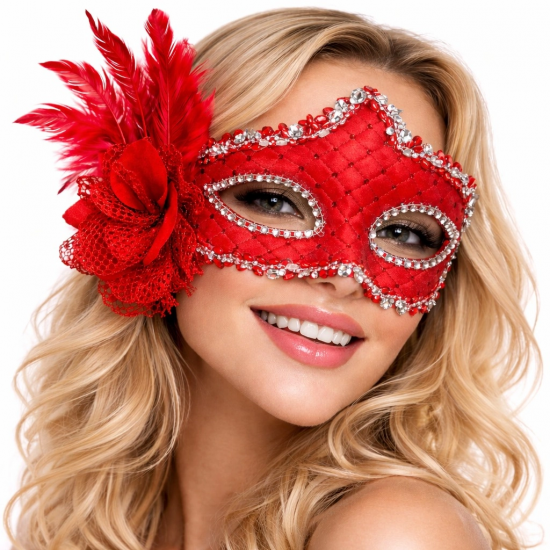 Mey İthalat® Kırmızı Tüylü Venedik Lüks Balo Maskesi