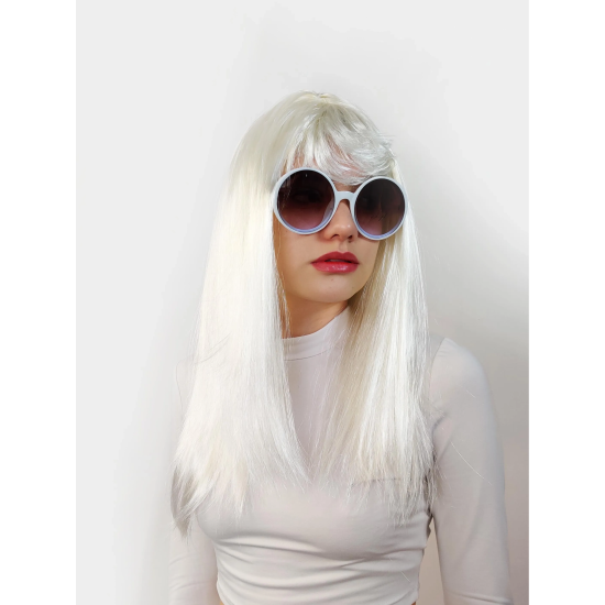 Mey İthalat® Beyaz Renk Uzun Düz Parti Peruğu