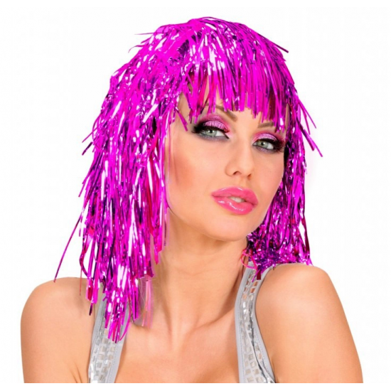 Mey İthalat® Pembe Fuşya Işıltılı Metalize Parti Peruğu