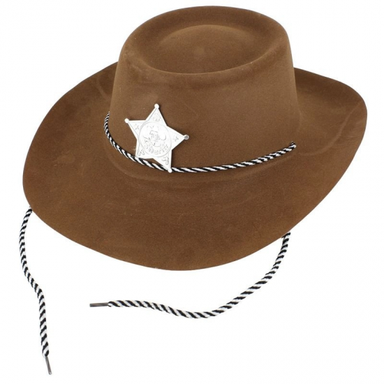 Mey İthalat® Çocuk Kovboy Şapkası Plastik Üzeri Flok Kaplama Açık Kahverengi