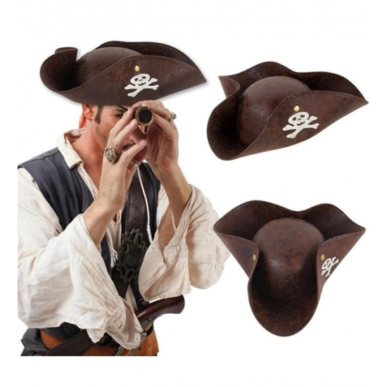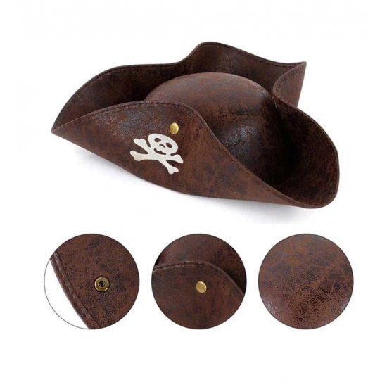 Mey İthalat® Kaptan Jack Korsan Şapkası Vinleks Deri Denizci Korsan Şapkası