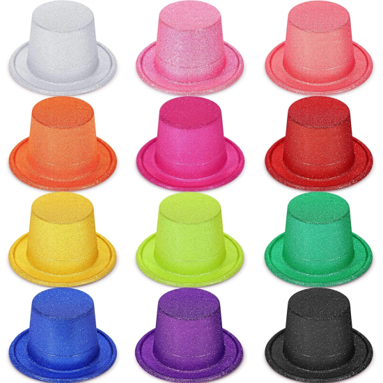 Mey İthalat® Karışık Renk Simli Silindir Parti Şapkaları (12 Adet)