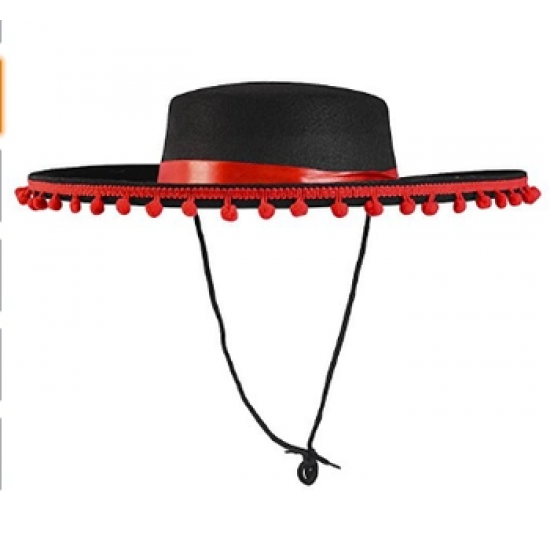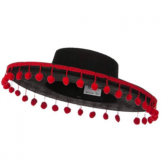 Mey İthalat® Kırmızı Ponponlu Siyah Renk Çocuk İspanyol Şapkası