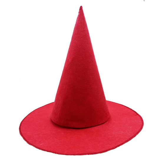 Mey İthalat® Kırmızı Renk Keçe Cadı Şapkası Yetişkin Çocuk Uyumlu 35X38 cm