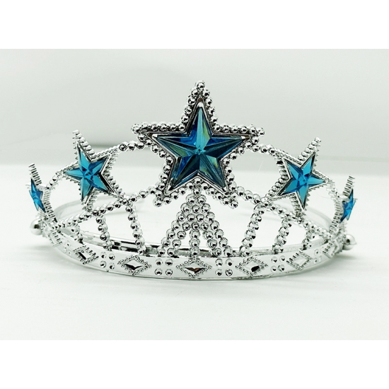 Mey İthalat® Mavi Yıldız Taşlı Plastik Kraliçe Prenses Elsa Tacı Çocuk Boy