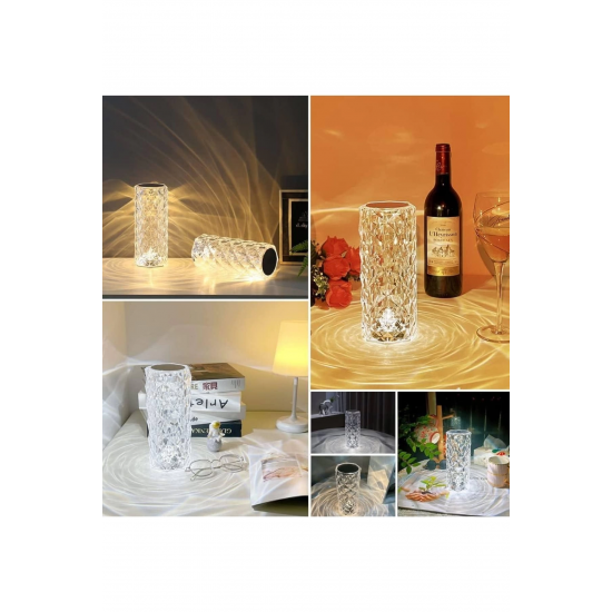 Mey İthalat® Kristal Lamba Masa Lambası Şarjlı Masa Lambası Dokunmatik Sensör Usb Şarjlı