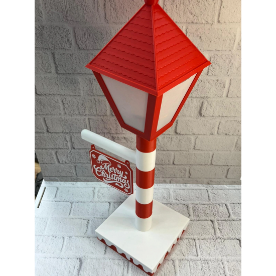 Klasik Noel tasarımından ilham alan Yılbaşı Tabelalı Dekoratif Lamba, kırmızı şapkalı direk formu ve asılı “Merry Christmas” tabelasıyla yılbaşı süslemelerine nostaljik bir dokunuş katar. 60 cm yüksekliği sayesinde bulunduğu ortamda hemen fark edilir ve dekorasyonun odak noktası haline gelir.Aparatlı yapısı sayesinde istenirse daha yüksek konumlandırılabilir, masa üstü, yer dekoru veya vitrin önü kullanımına uygundur. Yumuşak aydınlatması sayesinde ortamı boğmadan sıcak bir ışık yayar. Özellikle salon, antre, mağaza vitrini ve yılbaşı konseptli alanlarda şık bir görünüm sağlar.Yılbaşı dekorasyonunu tamamlamak isteyenler için hem dekoratif hem de aydınlatıcı bir üründür.