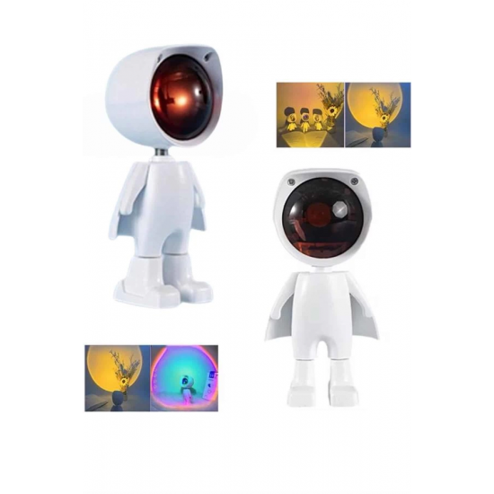 Bu şarjlı gün batımı lambası, sevimli astronot tasarımı ve sıcak renk tonlarıyla bulunduğu ortama hem estetik bir dokunuş hem de huzurlu bir atmosfer kazandırır. Gün batımı efektli ışık yayılımı sayesinde özellikle akşam saatlerinde loş ve dinlendirici bir ortam oluşturmak isteyen kullanıcılar için idealdir. Şık ve modern tasarımı, lambayı yalnızca bir aydınlatma aracı değil, aynı zamanda dekoratif bir obje haline getirir.Lambanın 5 Watt gücündeki LED ışığı, yumuşak ve göz yormayan bir aydınlatma sağlar. Kafasının 360 derece dönebilmesi ve 60 derece yukarı-aşağı hareket edebilmesi sayesinde ışığı istediğiniz yöne kolaylıkla ayarlayabilirsiniz. Bu esneklik, ister duvara gün batımı efekti yansıtmak ister kitap okurken odaklanmış bir ışık elde etmek isteyen kullanıcılar için büyük avantaj sunar.Ürün, USB ile şarj edilebilen dahili bataryası sayesinde prizden bağımsız çalışabilir ve tam şarjla 3-4 saate kadar kesintisiz aydınlatma sağlar. Evde, dış mekânda, seyahatlerde veya fotoğraf çekimlerinde rahatça kullanılabilir. Özellikle sosyal medya içerikleri, ürün çekimleri veya özel günlerde ambiyans yaratmak için oldukça uygundur.Dokunmatik kontrol özelliği, kullanıcı dostu bir deneyim sunarken aynı zamanda ışığın parlaklığını kolayca ayarlayabilmenizi sağlar. Gece lambası olarak da işlev görebilen bu ürün, uyku öncesi rahatlatıcı bir ortam sunar. Taşınabilir yapısı, ürünü istediğiniz her yerde kullanmanıza olanak tanır.Estetik ve işlevselliği bir araya getiren bu gün batımı lambası, ister kişisel kullanım ister dekoratif bir hediye alternatifi olarak her yaştan kullanıcıya hitap eder. Romantik ve sıcak bir atmosfer yaratmak isteyenler için ideal bir seçimdir.