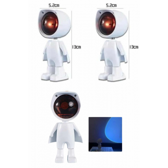 Bu şarjlı gün batımı lambası, sevimli astronot tasarımı ve sıcak renk tonlarıyla bulunduğu ortama hem estetik bir dokunuş hem de huzurlu bir atmosfer kazandırır. Gün batımı efektli ışık yayılımı sayesinde özellikle akşam saatlerinde loş ve dinlendirici bir ortam oluşturmak isteyen kullanıcılar için idealdir. Şık ve modern tasarımı, lambayı yalnızca bir aydınlatma aracı değil, aynı zamanda dekoratif bir obje haline getirir.Lambanın 5 Watt gücündeki LED ışığı, yumuşak ve göz yormayan bir aydınlatma sağlar. Kafasının 360 derece dönebilmesi ve 60 derece yukarı-aşağı hareket edebilmesi sayesinde ışığı istediğiniz yöne kolaylıkla ayarlayabilirsiniz. Bu esneklik, ister duvara gün batımı efekti yansıtmak ister kitap okurken odaklanmış bir ışık elde etmek isteyen kullanıcılar için büyük avantaj sunar.Ürün, USB ile şarj edilebilen dahili bataryası sayesinde prizden bağımsız çalışabilir ve tam şarjla 3-4 saate kadar kesintisiz aydınlatma sağlar. Evde, dış mekânda, seyahatlerde veya fotoğraf çekimlerinde rahatça kullanılabilir. Özellikle sosyal medya içerikleri, ürün çekimleri veya özel günlerde ambiyans yaratmak için oldukça uygundur.Dokunmatik kontrol özelliği, kullanıcı dostu bir deneyim sunarken aynı zamanda ışığın parlaklığını kolayca ayarlayabilmenizi sağlar. Gece lambası olarak da işlev görebilen bu ürün, uyku öncesi rahatlatıcı bir ortam sunar. Taşınabilir yapısı, ürünü istediğiniz her yerde kullanmanıza olanak tanır.Estetik ve işlevselliği bir araya getiren bu gün batımı lambası, ister kişisel kullanım ister dekoratif bir hediye alternatifi olarak her yaştan kullanıcıya hitap eder. Romantik ve sıcak bir atmosfer yaratmak isteyenler için ideal bir seçimdir.