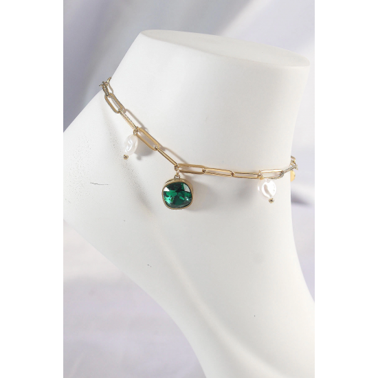 Mey İthalat® 316L Çelik Gold Renk Zümrüt Taş Tasarımlı Halhal