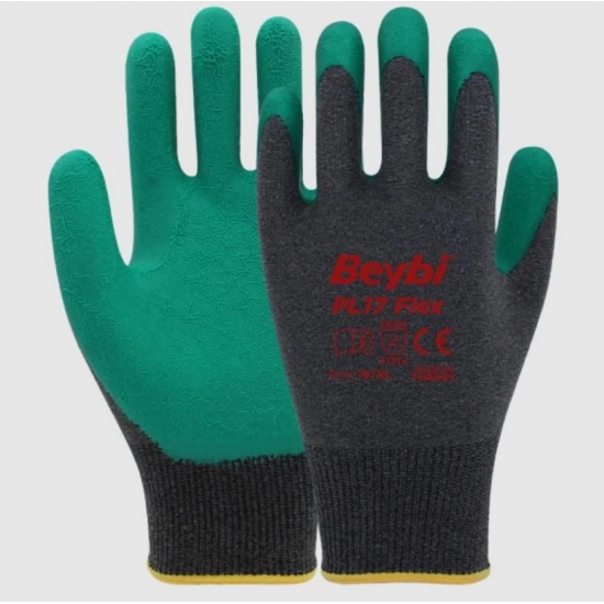 Mey İthalat® Beybi PL17 Flex Likralı İpten Örme Lateks Eldiven NO:9 Yeşil