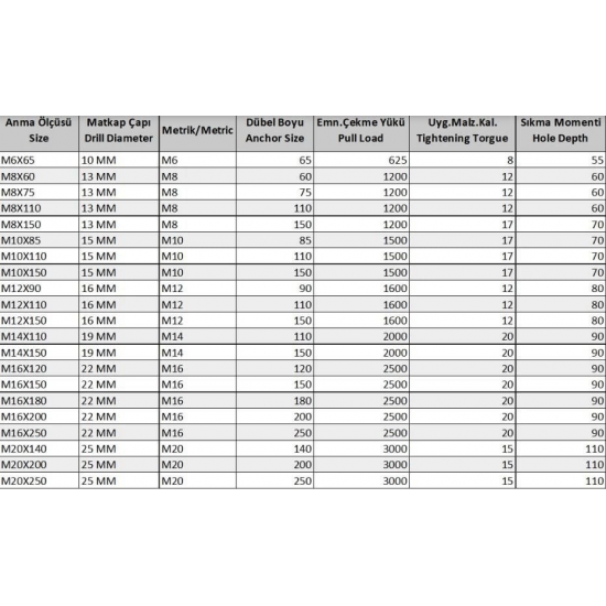 Civatalı Borulu Dübel : Beton kalitesi düşük olan yerlerde tercih edilen dübel çeşididir. Üzerindeki kovanı borudan imal edilmiştir.