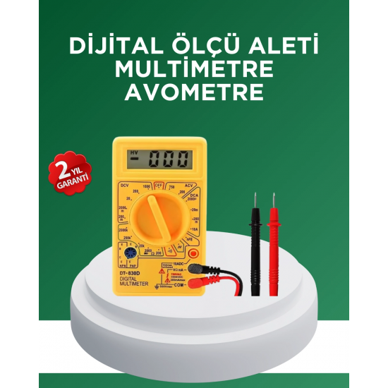 Dijital multimetre ölçü aleti, elektrik ve elektronik işlemlerinde doğru ve güvenilir ölçüm yapmak isteyen kullanıcılar için tasarlanmıştır. AC ve DC ölçüm desteği sayesinde alternatif akım ve doğru akım değerlerini kolayca kontrol etmenize yardımcı olur. Evde yapılan küçük elektrik kontrollerinden profesyonel atölye çalışmalarına kadar geniş bir kullanım alanı sunar.LCD ekranlı yapısı, ölçüm sonuçlarının net ve okunabilir şekilde görüntülenmesini sağlar. Büyük ekran tasarımı sayesinde düşük ışık koşullarında bile değerleri rahatlıkla takip edebilirsiniz. Kullanımı kolay döner anahtar sistemi, ölçüm türleri arasında hızlı geçiş yapılmasına imkân tanır ve pratik bir kullanım deneyimi sunar.10 amper ölçüm kapasitesi, cihazı standart ev elektriği ve birçok teknik uygulama için uygun hale getirir. Gerilim, akım ve direnç ölçümlerini tek bir cihaz üzerinden gerçekleştirme avantajı sağlar. Elektrik tesisat kontrolü, priz ve kablo testleri, elektronik devre kontrolleri gibi birçok alanda kullanılabilir.Dayanıklı gövde yapısı, düzenli ve uzun süreli kullanım için uygundur. Darbelere karşı dirençli tasarımı sayesinde güvenli bir kullanım sunar. Taşınabilir yapısı, cihazın çanta içinde kolayca taşınmasını sağlar ve sahada kullanım için ideal bir çözüm sunar.Dijital multimetre, hem amatör kullanıcılar hem de teknik işlerle ilgilenen profesyoneller için pratik ve işlevsel bir ölçüm cihazıdır. Elektrik ölçümlerini daha kontrollü ve güvenli şekilde yapmak isteyenler için vazgeçilmez bir yardımcıdır.