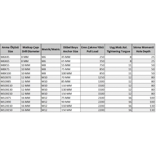 Güvenli: Sac gömlekli dübeller, yüksek dayanıklılıkları nedeniyle güvenlidir ve iyi bir sabitleme sağlarlar.