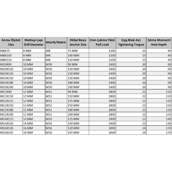 Mey İthalat® Klipsli Çelik Dübel M10X110 ( 5 Adet)