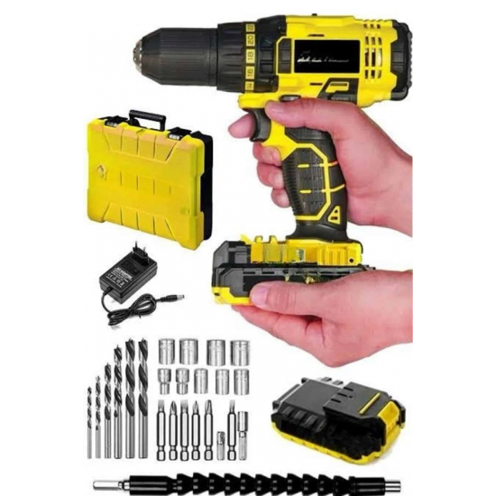 Mey İthalat® Profesyonel Çift Bataryalı Akülü Vidalama Şarjlı Matkap 24 Parça