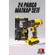 Mey İthalat® Profesyonel Çift Bataryalı Akülü Vidalama Şarjlı Matkap 24 Parça
