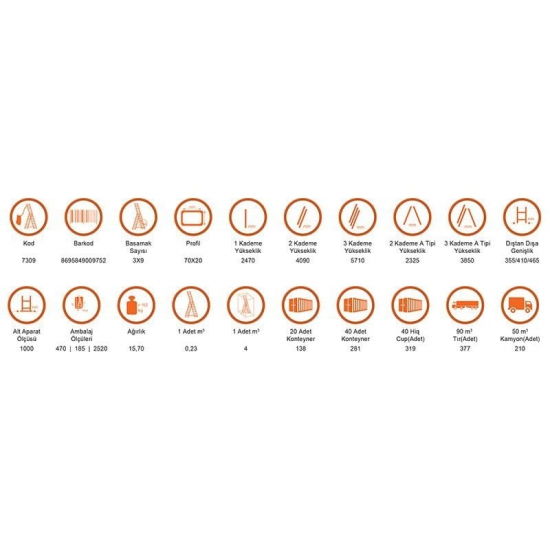 Mey İthalat® Saraylı 3x9 A Tipi Sürgülü Merdiven 7,41 Metre