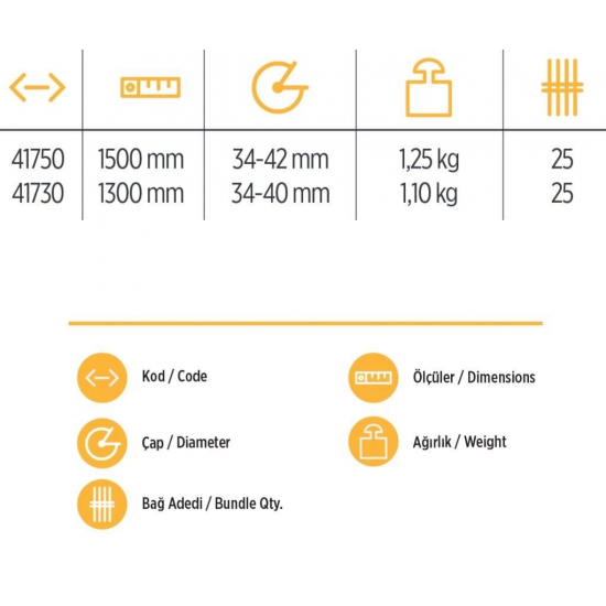 Mey İthalat® YKS 41750 Eğik Kürek Sapı 1,5 Metre