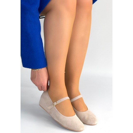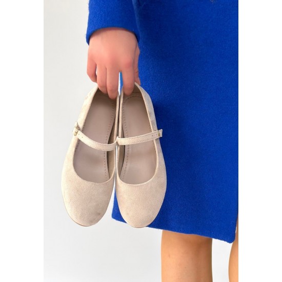 Lossa Bej Süet Kemerli Babet Ayakkabı