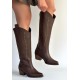 Meof Acı Kahve Cilt Topuklu Çizme