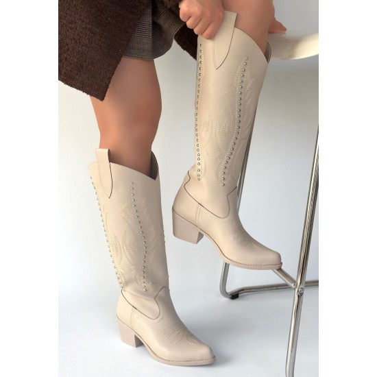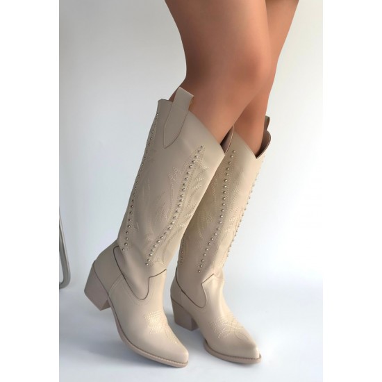 Meof Bej Cilt Topuklu Çizme