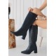 Roksa Siyah Cilt Topuklu Çizme