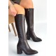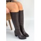 Tiyan Kahverengi Cilt Topuklu Çizme
