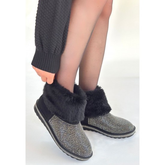 Linka Siyah Süet Gümüş Boncuk İşlemeli Bot