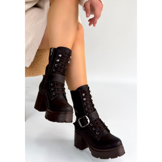 Linma Acı Kahve Cilt Bağcıklı Topuklu Bot