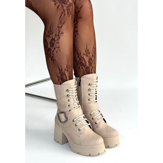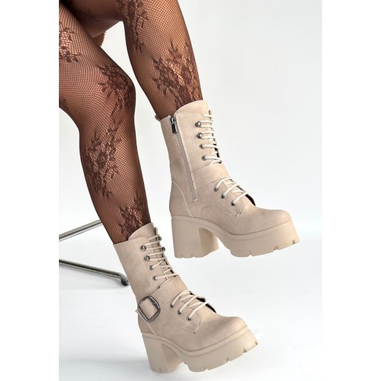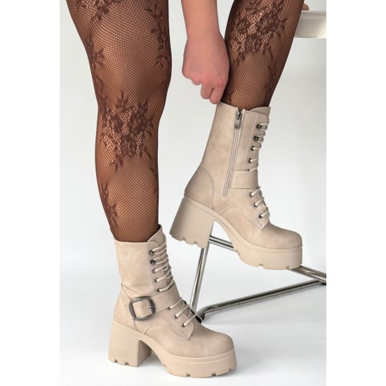 Linma Bej Nubuk Bağcıklı Topuklu Bot