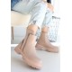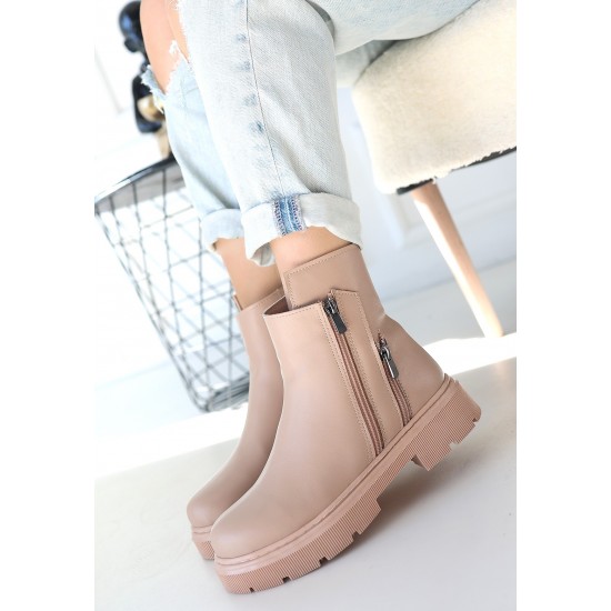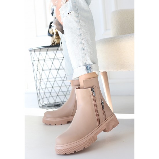 Menta Nude Cilt Fermuar Aksesuarlı Bot