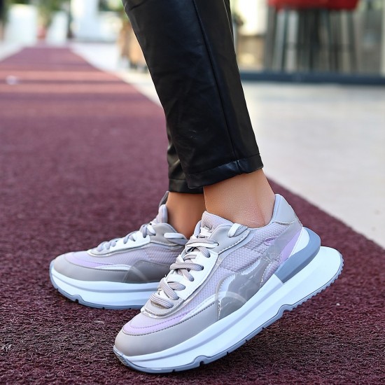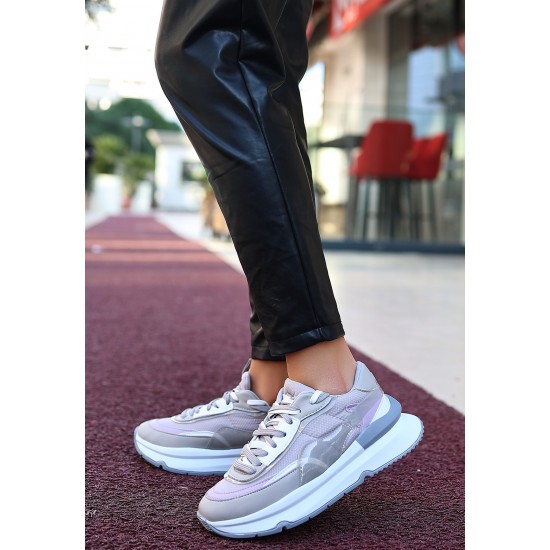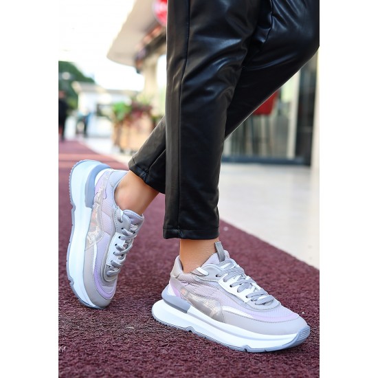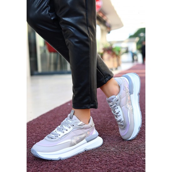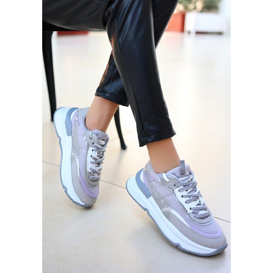 Aleh Gri Cilt Bağcıklı Spor Ayakkabı
