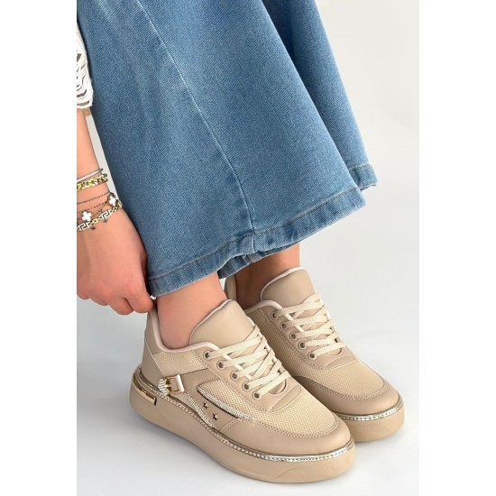 Junda Bej Cilt Bağcıklı Spor Ayakkabı
