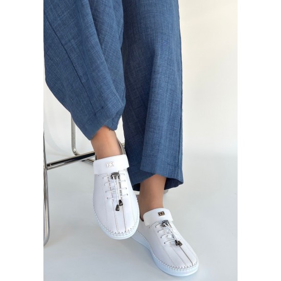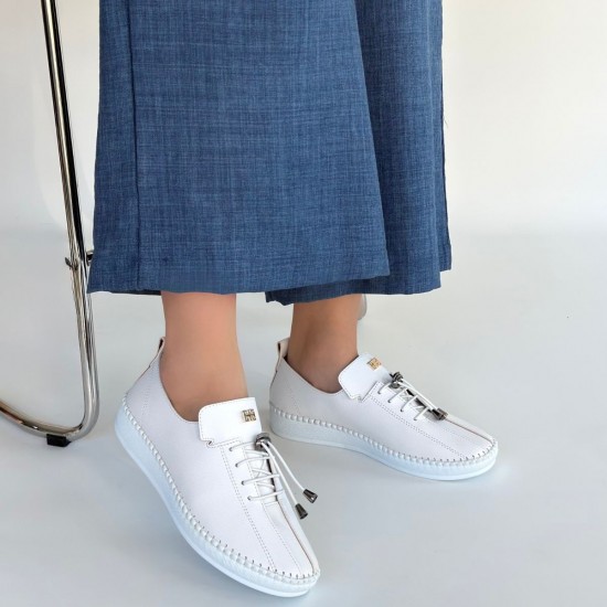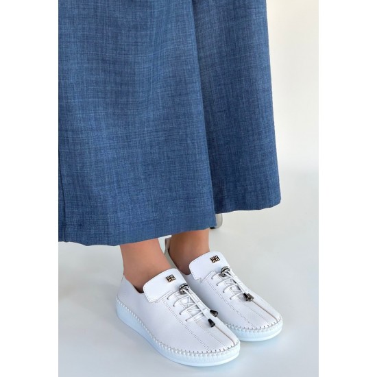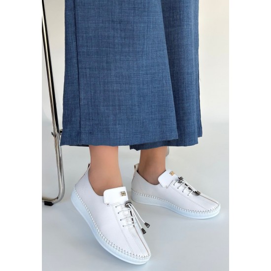 Warte Beyaz Cilt Bağcıklı Spor Ayakkabı