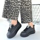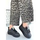 Leope Siyah Cilt Bağcıklı Spor Ayakkabı