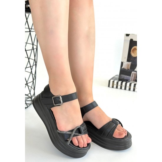 Luno Siyah Cilt Kemerli Sandalet