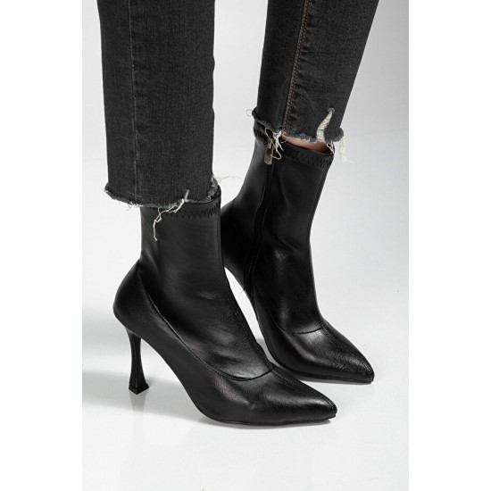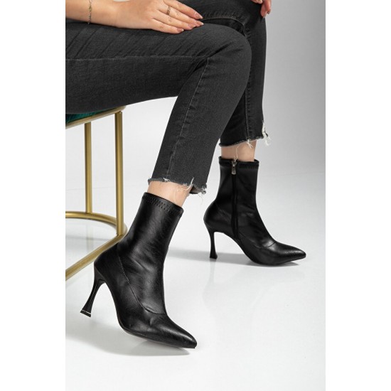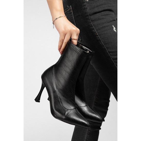Orjen Siyah Cilt Streç Topuklu Bot