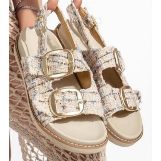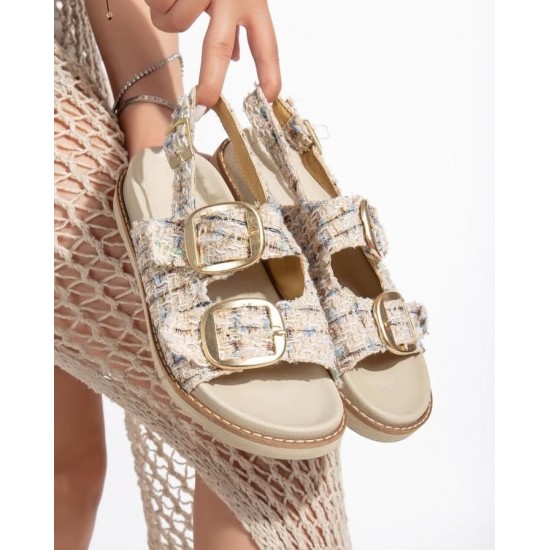 Olira Bej Simli Kemerli Sandalet