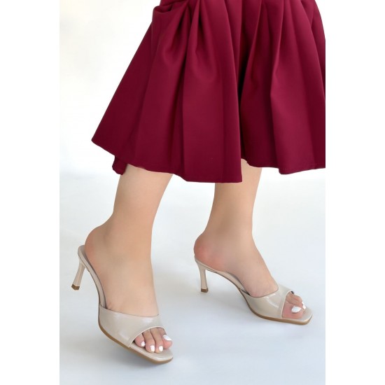 Ribay Bej Rugan Topuklu Terlik
