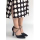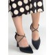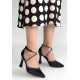 Kanji Siyah Saten Topuklu Ayakkabı