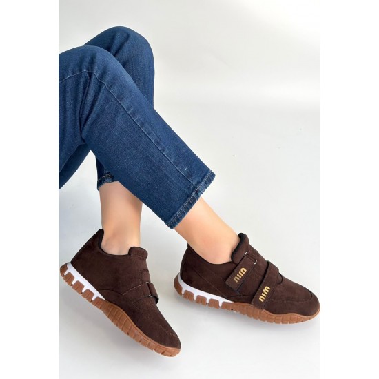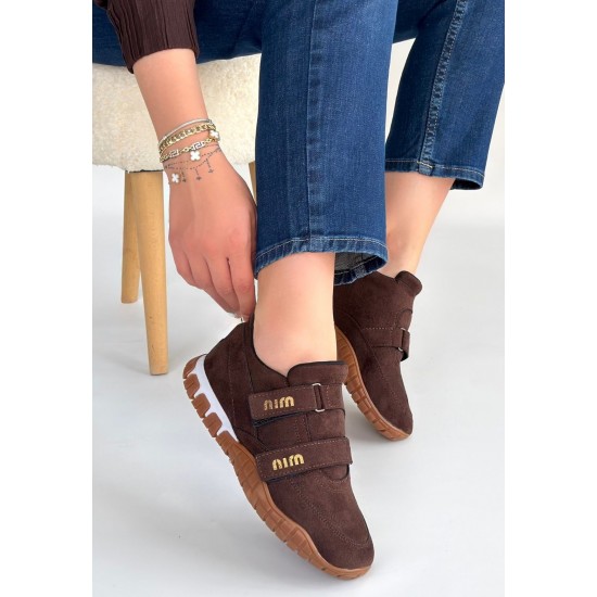 Tunga Kahverengi Süet Cırt Cırtlı Spor Ayakkabı