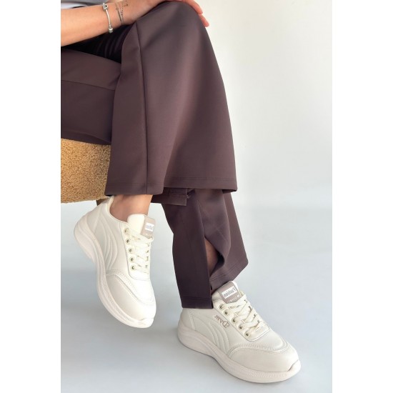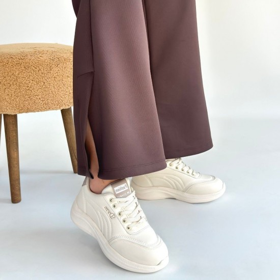 Yejja Bej Cilt Bağcıklı Spor Ayakkabı