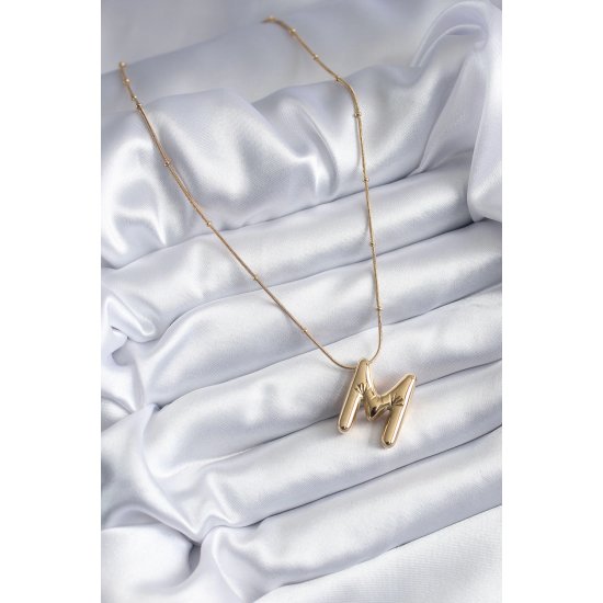 Mey İthalat® 316L Çelik Gold Renk Bubble "M" Harf Model Kadın Kolye