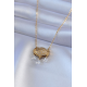Mey İthalat® 316L Çelik Gold Renk Lotus Model Zirkon Taşlı Kadın Kolye