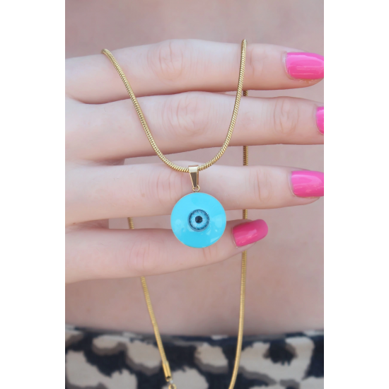 Mey İthalat® 316L Çelik Gold Renk Nazar Boncuk Model Kadın Kolye