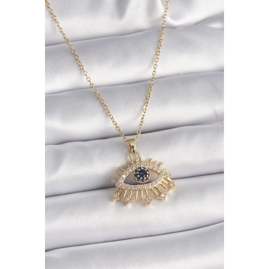 Mey İthalat® 316L Çelik Gold Renk Zincir Zirkon Taşlı Göz Model Kadın Yüzük