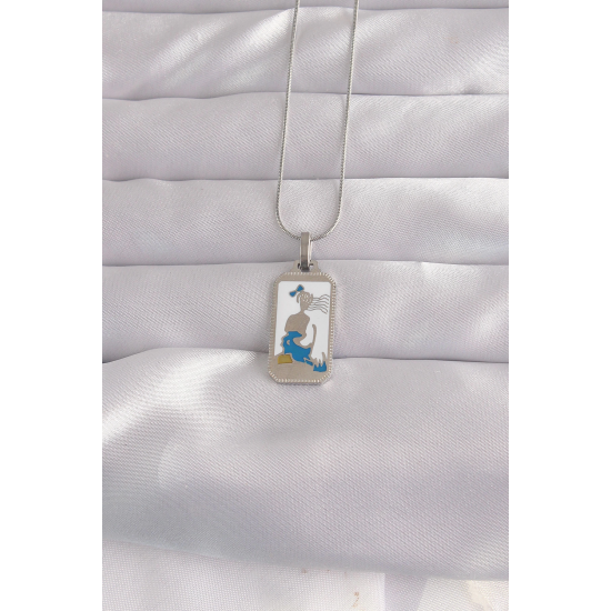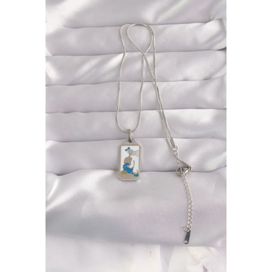 Mey İthalat® 316L Çelik Gümüş Renk Beyaz Mineli Kız Figür Tarot Kolye