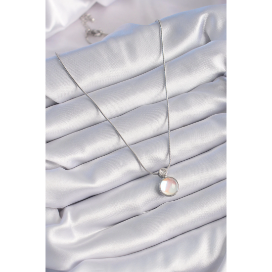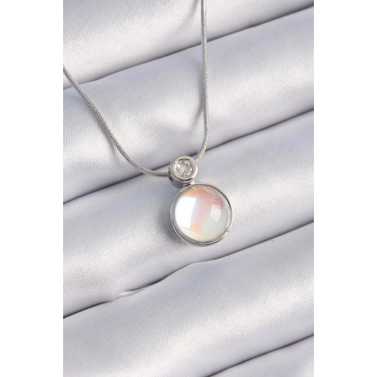 Mey İthalat® 316L Çelik Gümüş Renk Beyaz Sedefli Vintage Model Kadın Kolye
